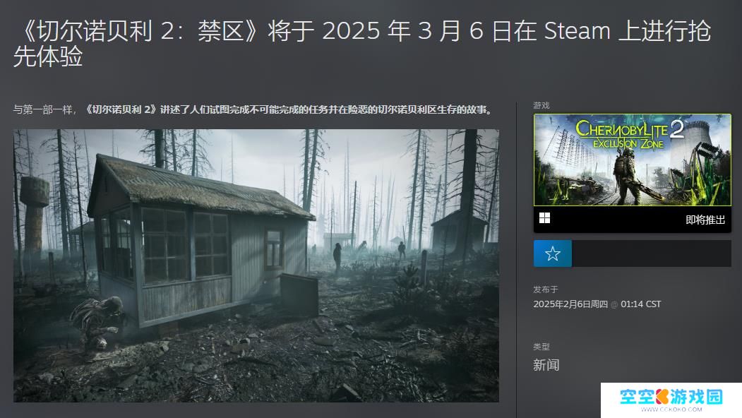 《切尔诺贝利人2:禁区》将于3月6日Steam抢先体验,尚未公布具体价格